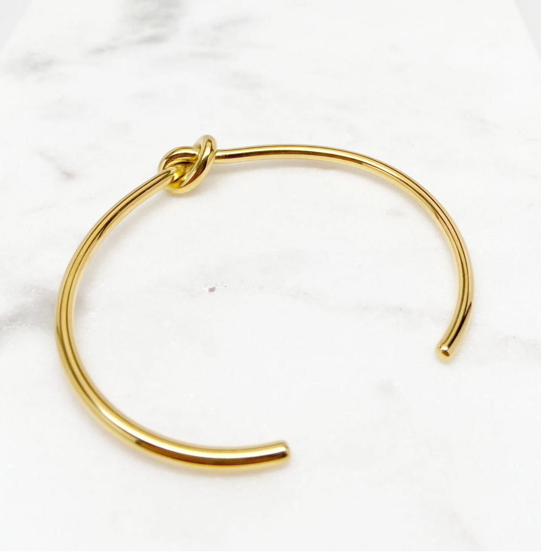 Simple yet deeply meaningful, the Eternal Knot Bracelet represents love that has no beginning and no end. Crafted in a sleek gold-tone finish, this minimalist bracelet features a delicate knot design that symbolizes eternal connection, strength, and unity.
